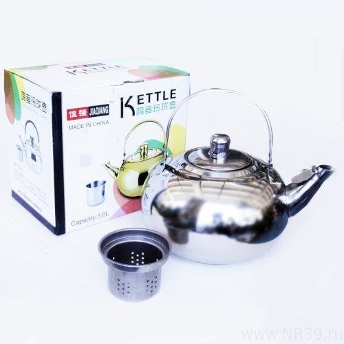 Главная / Снаряжение / Туристические принадлежности и посуда / Чайник походный KETTLE, 2,0л, 18см, нерж.сталь, с ситечком, со свистком, в коробке